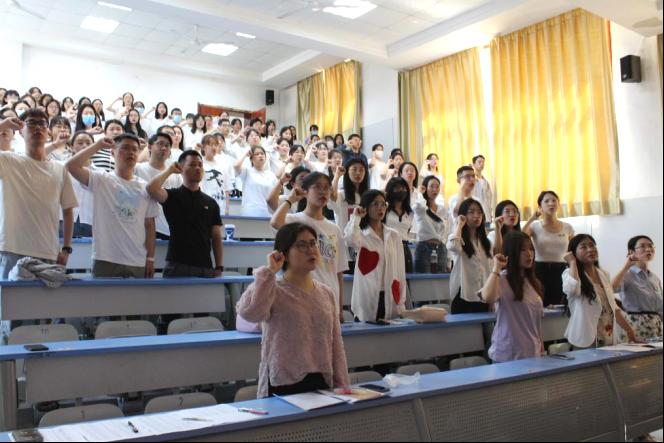 会议伊始,学生第三党支部组织委员周颖鑫带领大家重温入党誓词,教育引导全体党员同志不忘入党初心、坚定理想信念。学生第三党支部毕业生党员周涛领读《中国共产党章程》,号召全体党员同志认真学习党章、严格遵守党章,强化党章意识,始终将党章作为立身、立言、立行之本。学生第一党支部毕业生党员丁朋代表918博天堂(中国)官方网站