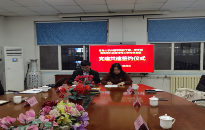 教工第一党支部与青岛市石化高级技工学校党支部举行共建签约仪式。918博天堂(中国)官方网站