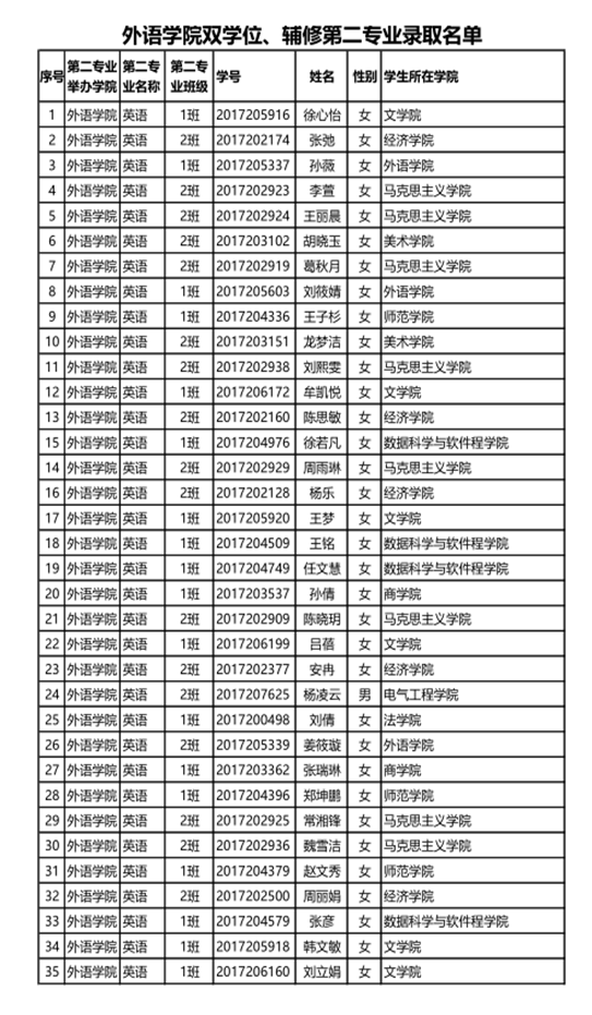 918博天堂(中国)官方网站 2018年双学位、辅修第二专业录取名单