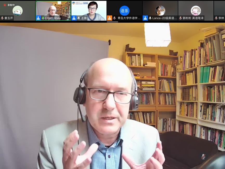 讲座最后,Elliot Shaw教授对与会者提出的问题都给予了详细解答。本次讲座涵盖哲学、历史、文学、文化以及跨文化等各个学科领域,内容丰富,例证详实,为同学们今后的跨学科学习和跨领域研究具有启发意义。