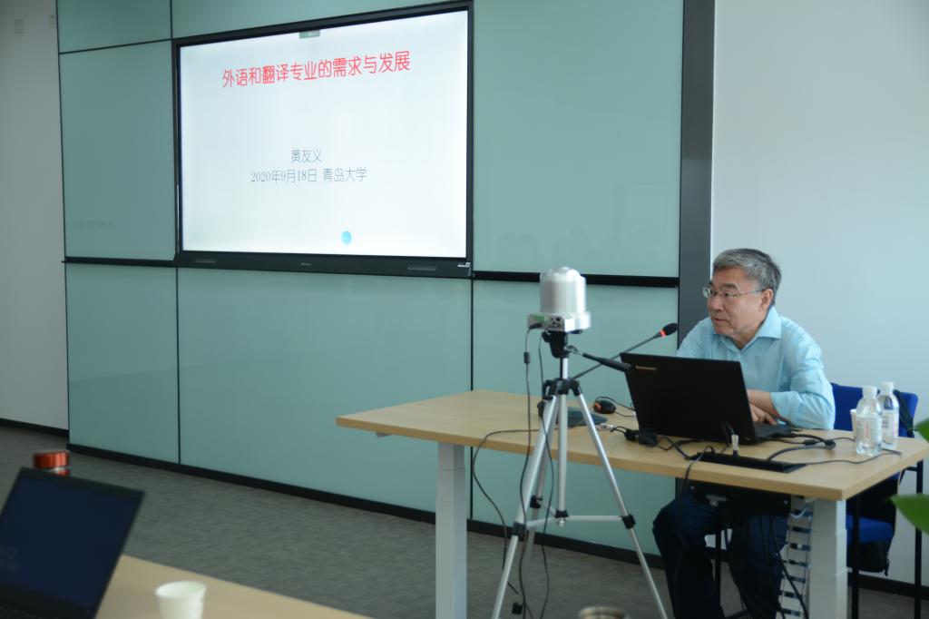 在青岛大学会议中心402举办了外国语言文学系列讲座第112讲。中国译协常务副会长、中国翻译研究院副院长、全国翻译资格(水平)考试英语专家委员会主任、中国翻译协会秘书长及《中国翻译》杂志主编黄友义先生主讲。讲座由918博天堂(中国)官方网站