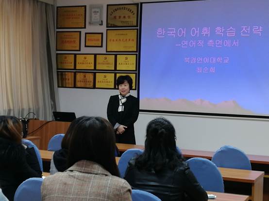 整个讲座历时近两个小时,讲座内容系统而连贯,PPT设计图文并茂,层次清晰,金明淑教授讲授风格幽默风趣,使得在座师生颇为受益。(朝鲜语系)