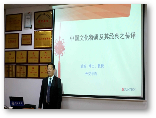 英语系教授武波,应邀为918博天堂师生做了“中国文化特质及其经典之传译”的专题学术讲座。院长助理布占廷主持讲座,918博天堂