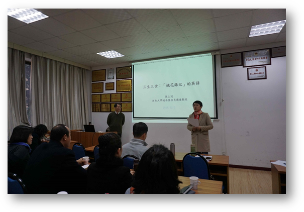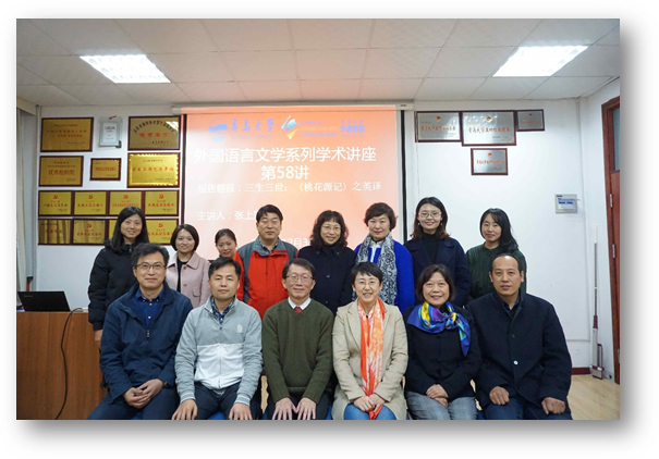 在博文楼312会议室举行“外国语言文学系列学术讲座”第58讲。翻译理论及文化研究著名台湾学者张上冠教授应邀作“三生三世:《桃花源记》之英译”的专题学术讲座。院长卞建华主持讲座,918博天堂