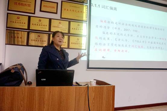 黄勤教授以文学文体学为基础,比较了杨宪益、戴乃迭夫妇以及美国翻译家威廉·莱尔各自翻译的《阿Q正传》。讲座中摘取了小说中的几个选段,结合两个译本,从语言形式、叙述技巧、言语、思想表述层面进行分析,强调了不同的翻译方法有其不同的表现重心,达到了不同的源文再现程度和美学效果,给大家以深刻的启迪。