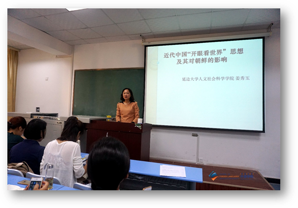 历史系姜秀玉教授应邀做客外国语言系列学术讲座第48讲,在博文楼403教室作题为《近代中国“开眼看世界”思想对朝鲜的影响》的专题讲座。副院长李明学主持,918博天堂