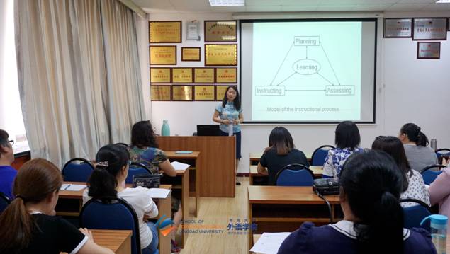 杨教授从中小学教师教学实践出发,着重分析了课堂教学中存在的问题。杨教授指出,语言是整体的输入,教学是教师与学生的互动,教师的高度决定了学生的高度,师生共创课堂,才能保证课堂教学的有效性。此外,杨教授还指出教师应该考虑到不同语言学习者的语言水平,关注学生的认知与注意力的发展,在实际教学中提供真实、有意义的语言输入,才能更好的培养学生批判性的思维能力。