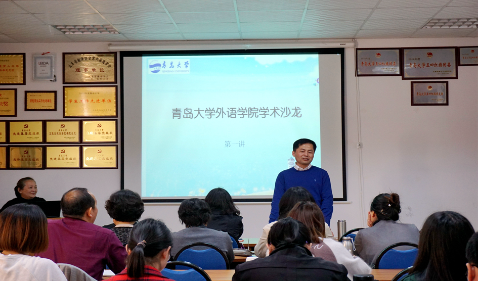学术沙龙第1讲。英语系教授徐莉娜老师作了题为《以“印欧语的眼光”看汉语主语的是与非》的专题学术讲座。院长卞建华、副院长宫英瑞以及来自918博天堂(中国)官方网站