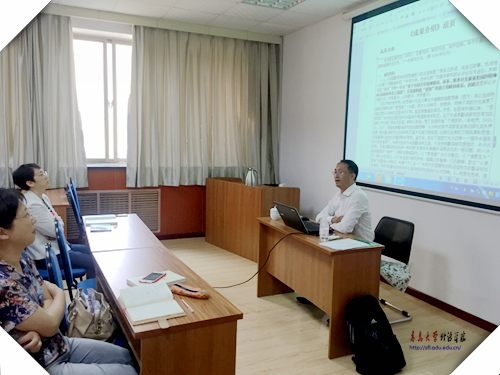 教师主讲“教育部社科重大项目和后期资助项目申报辅导会”。院长卞建华主持,副院长李明学、宫英瑞及各教学系的三十余位中青年教师参加了辅导。