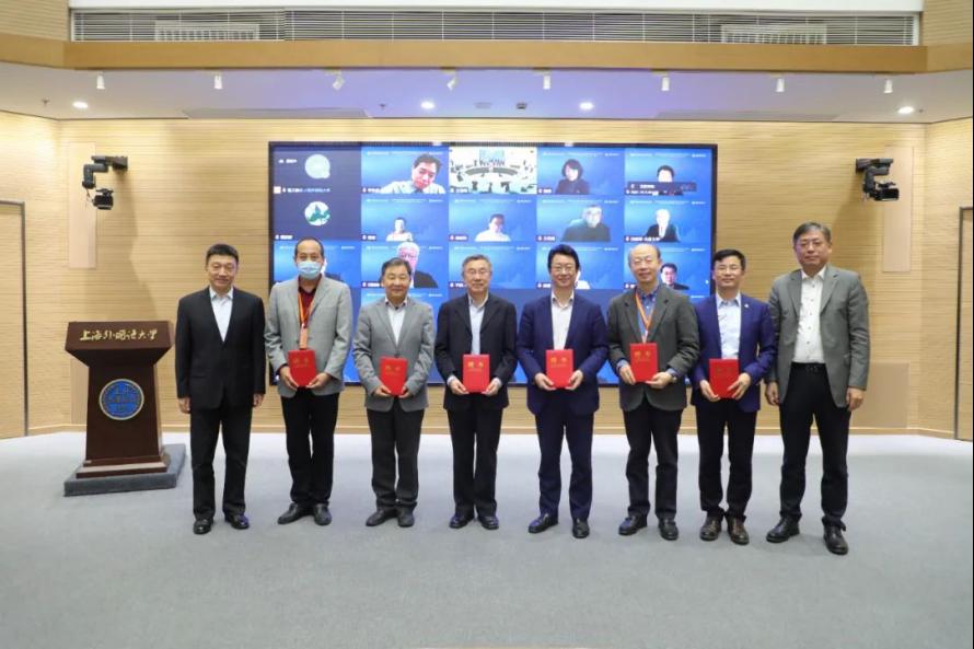 会议宣布成立由23位专家学者组成的教指委专家委员会(以下简称“专委会”),上海外国语大学党委书记、教指委副主任委员姜锋宣读了专委会名单。于涛、姜锋共同为专委会委员代表颁发聘书。