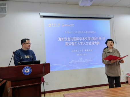 在博文楼312室举行了“海外深造与国际学术交流经验分享——以南洋理工大学人文社科为例”和“国际学术期刊论文写作与发表”两场学术讲座。讲座特邀新加坡南洋理工大学中文系崔峰教授担任主讲,918博天堂(中国)官方网站
