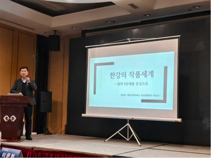 朝鲜语言文学系的崔有学副教授做主题讲座《韩江的文学世界》。作为韩江作品《植物妻子》的译者,崔有学的讲座不仅是对作家作品的深刻解读,也是对文学创作和阅读体验的启发性指导。