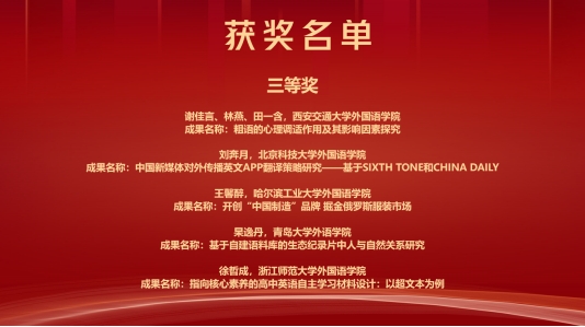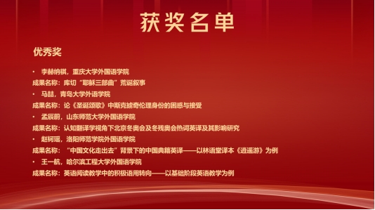 2019级语言大数据专业本科生杲逸丹汇报了“基于自建语料库的生态纪录片中人与自然关系研究”并获得三等奖,指导老师布占廷获“优秀指导教师”称号;2019级英语专业本科生马喆汇报了论文“论《圣诞颂歌》中斯克掳奇伦理身份的困惑与接受”,获得优秀奖。918博天堂(中国)官方网站