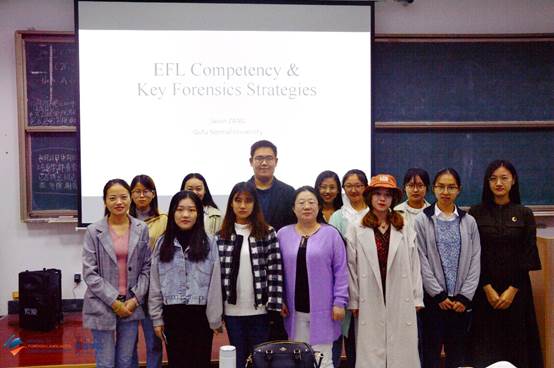师生做了题为“EFL Competency & University Forensics”的英文讲座。英语系副主任吕云老师出席并主持。