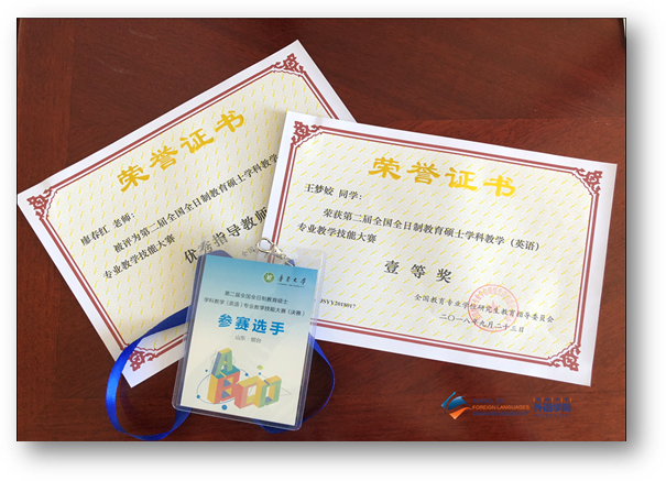 2017级学科教学(英语)专业硕士研究生王梦姣同学获得一等奖,指导老师廖春红教授获得优秀指导教师称号。这是918博天堂学子在该项目比赛中连续两届获得一等奖。