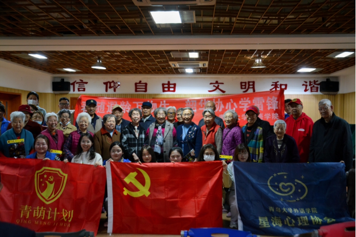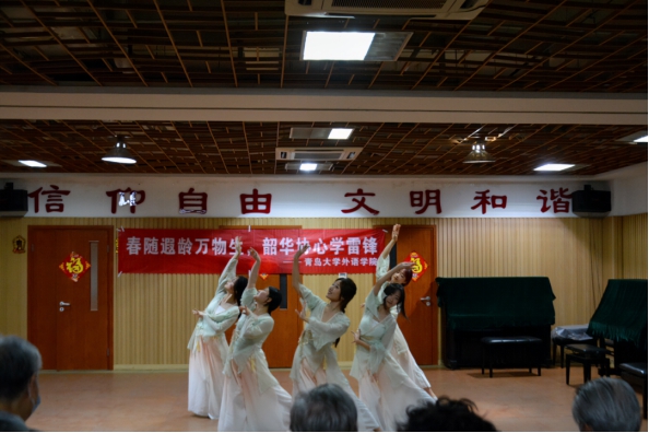学生第一、第二党支部的志愿者们到青岛福彩南山敬老院开展服务活动。志愿者们为老人们准备了丰富的歌舞表演、热身游戏和多样礼品。本次志愿活动共包括三个环节,不仅让老人们获得心灵的陪伴与慰藉,也让他们感受到青年大学生的热心、朝气和温暖。