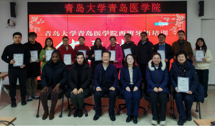 西班牙语课程培训班第一期学员结业典礼在浩园医学教育综合楼213 会议室顺利举行。医918博天堂