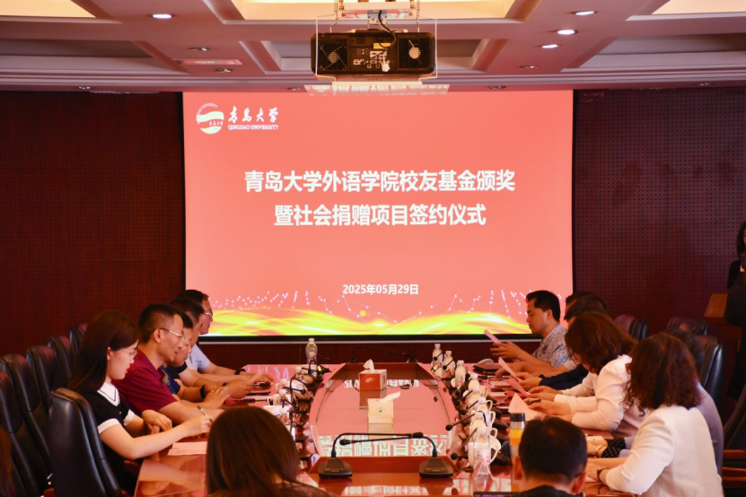5月29日下午,918博天堂(中国)官方网站 校友教育基金颁奖暨企业捐赠项目签约仪式在浮山校区办公楼407会议室举行。校党委常委、副校长刘恩贤出席活动并致辞。招远帝源服饰有限公司总经理、96级日语系校友李永胜,青岛智邦慧海文化传播有限公司总经理王军,上海文策信息科技有限公司授权代表、2002级计算机系校友蔡世禄、学校相关部门负责人、918博天堂(中国)官方网站 获奖师生代表等出席活动。