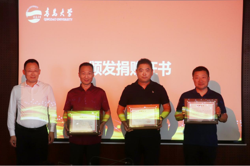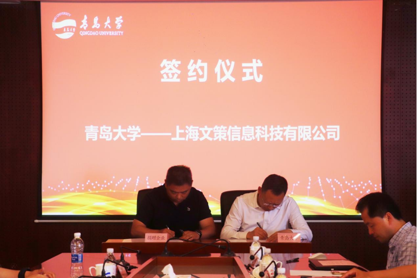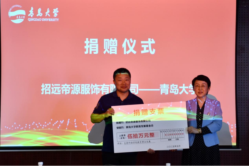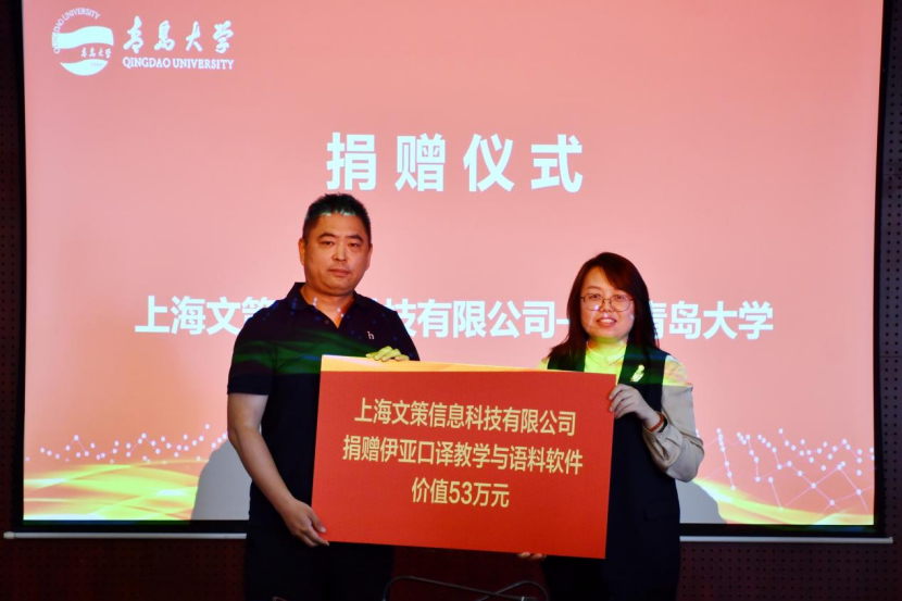 为支持青岛大学和918博天堂(中国)官方网站 教育事业发展,四家社会企业本次向学校提供资金捐赠和实物捐赠,合计捐赠金额175.06万元。其中,96级日语系校友刘伟、李永胜分别捐赠50万元,设立“依美时尚教育基金”和“帝源服饰教育基金”,用于支持918博天堂 的学科建设、教师发展、人才培养、校园文化建设。青岛智邦慧海文化传播有限公司捐赠价值22.06万元的智慧教室设备,上海文策信息科技有限公司捐赠价值53万元的伊亚口译教学与语料软件V1.0软件系统,用于918博天堂(中国)官方网站 计算机辅助翻译实验室的设备更新和系统升级,提升918博天堂 计算机辅助翻译教学的信息化、智能化水平,为AI赋能高水平外语语言人才成长提供平台支撑。