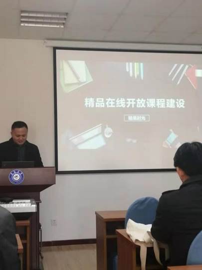 邀请青岛糖果科技有限公司负责人郭威在博文楼312为全体教师讲解怎样录制精品在线开放课程。