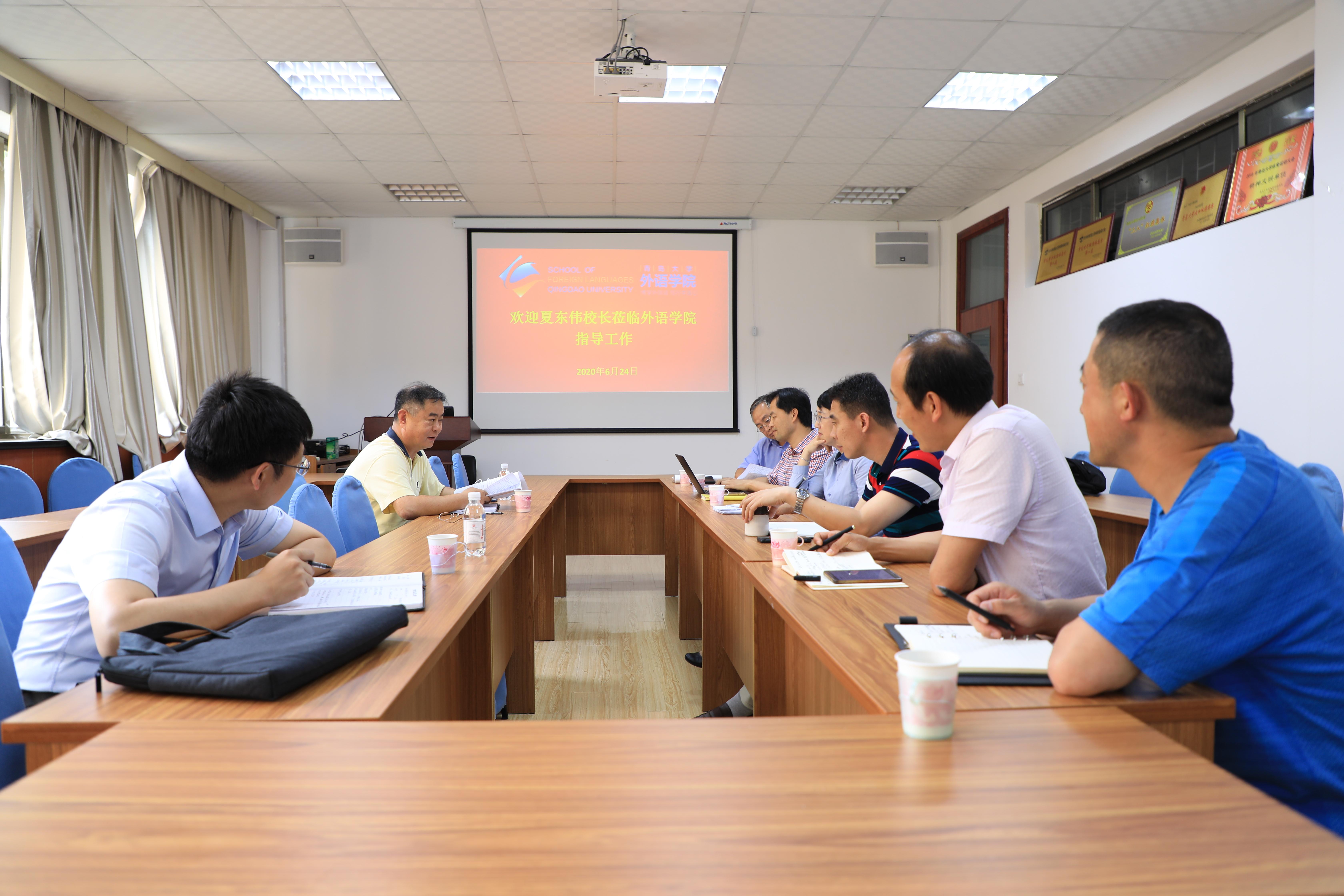 调研指导外国语言文学一级学科博士点申报工作。调研会由院长卞建华主持,院党委书记王传永、副院长布占廷、德语系主任綦甲福、普通英语系主任邢富坤参加调研交流。