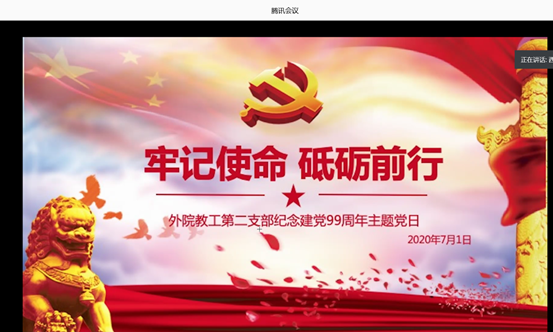 教工第二党支部利用腾讯会议召开了牢记使命,砥砺前行——庆祝建党99周年主题党日”活动。活动由教工第二党支部书记崔花主持,二支部教师党员参加会议。与会党员结合疫情期间自身感受表达了对建党99周年的祝福。