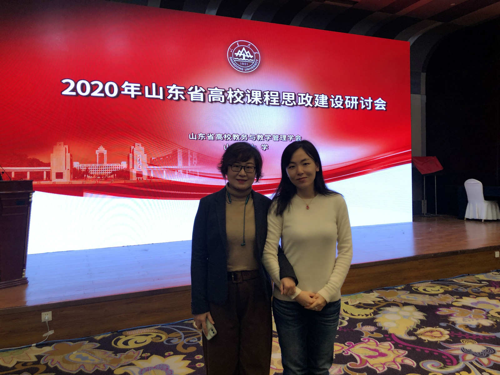 院长助理曹杉、英语系副主任王薇参加了在济南举行的2020年山东省高校课程思政建设研讨会。会议由山东省高校教务与教学管理学会主办,山东大学承办。会议的主要目的是推进山东高校认真学习和贯彻落实习近平总书记有关加强高校思想政治教育工作的指示精神,落实教育部等八部门《关于构建高校思想政治教育工作体系的意见》和教育部《高等学校课程思政建设指导纲要》,大力推进山东省高校课程思政建设,提升育人能力和水平。