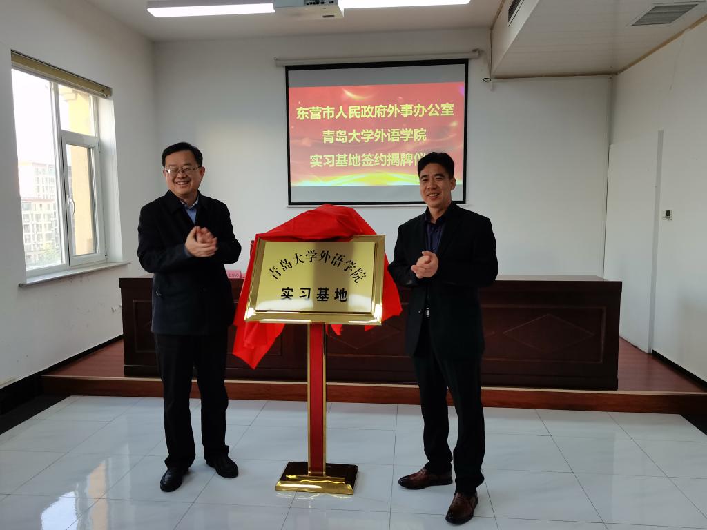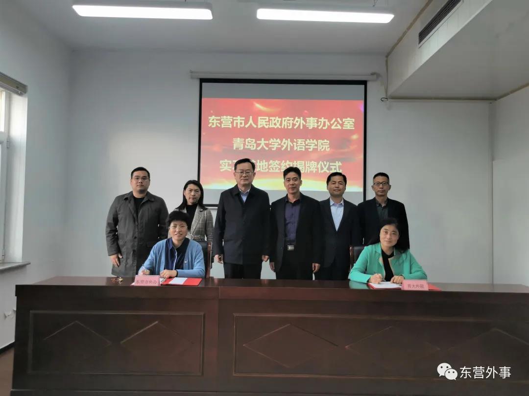 与东营市共建实习基地签约仪式在东营举行。院党委书记王传永、副书记王海青、副院长布占廷、东营市外办党组书记、主任苏保乾、外办党组成员、副主任徐燕等出席仪式,仪式由徐燕主持。