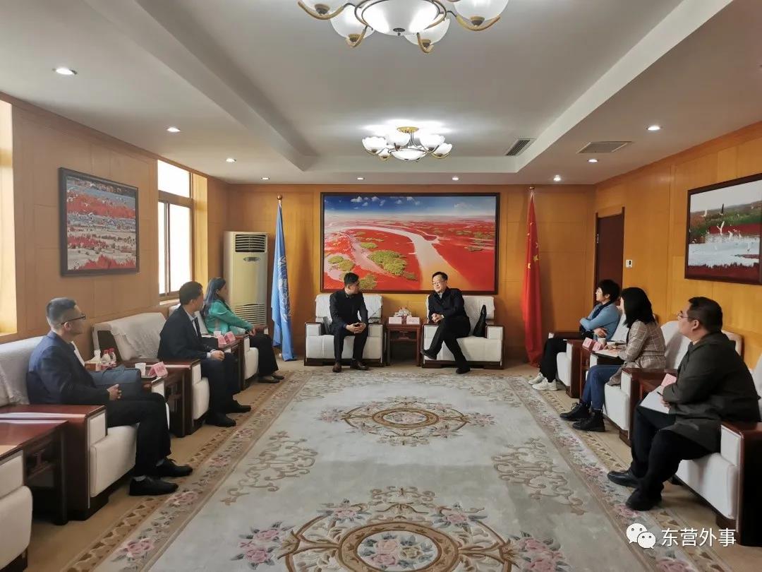 会上,双方围绕“推进东营国际化发展、外事服务合作、实习实践基地建设”等内容进行了深入交流。