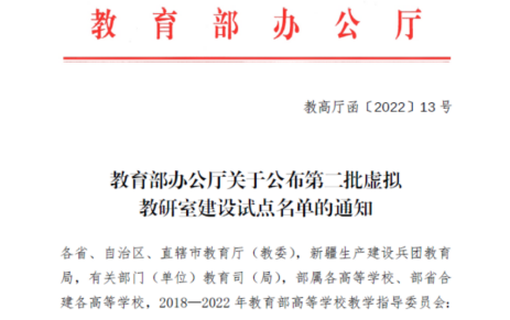 近日,教育部公布第二批全国虚拟教研室建设试点名单,由918博天堂(中国)官方网站