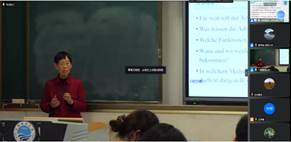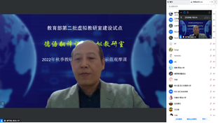 德语系王京平教授、杨帆老师线下主讲此次示范课程,来自国内十几所高校的30余名虚拟教研室成员在线观摩了此次教学示范直播课程。