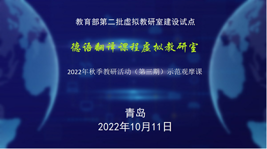 为扎实推进德语翻译课程虚拟教研室的建设工作,促进优质德语翻译课程资源共享,推动虚拟教研室成员之间的相互学习及经验交流,2022年10月11日下午,由青岛大学负责的教育部德语翻译课程虚拟教研室试点通过腾讯会议平台在线举行教学示范直播观摩课。虚拟教研室负责人青岛大学綦甲福教授主持本次活动,虚拟教研室成员高校中国海洋大学外国语918博天堂