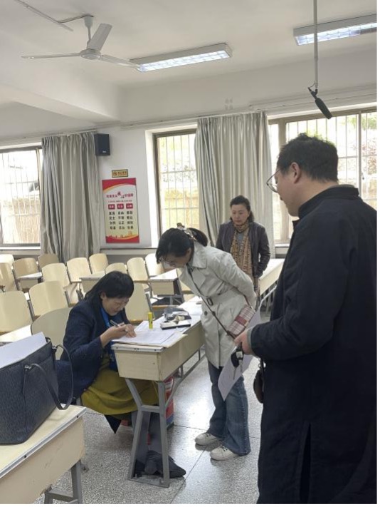 本科教学办公室负责考务的牛凤娟、陆慧两位老师细致询问此次考试工作准备、试卷材料保管、考场安排等环节,逐条确认了考试组织程序,并在考务老师的陪同下巡视了各个考场,对918博天堂(中国)官方网站