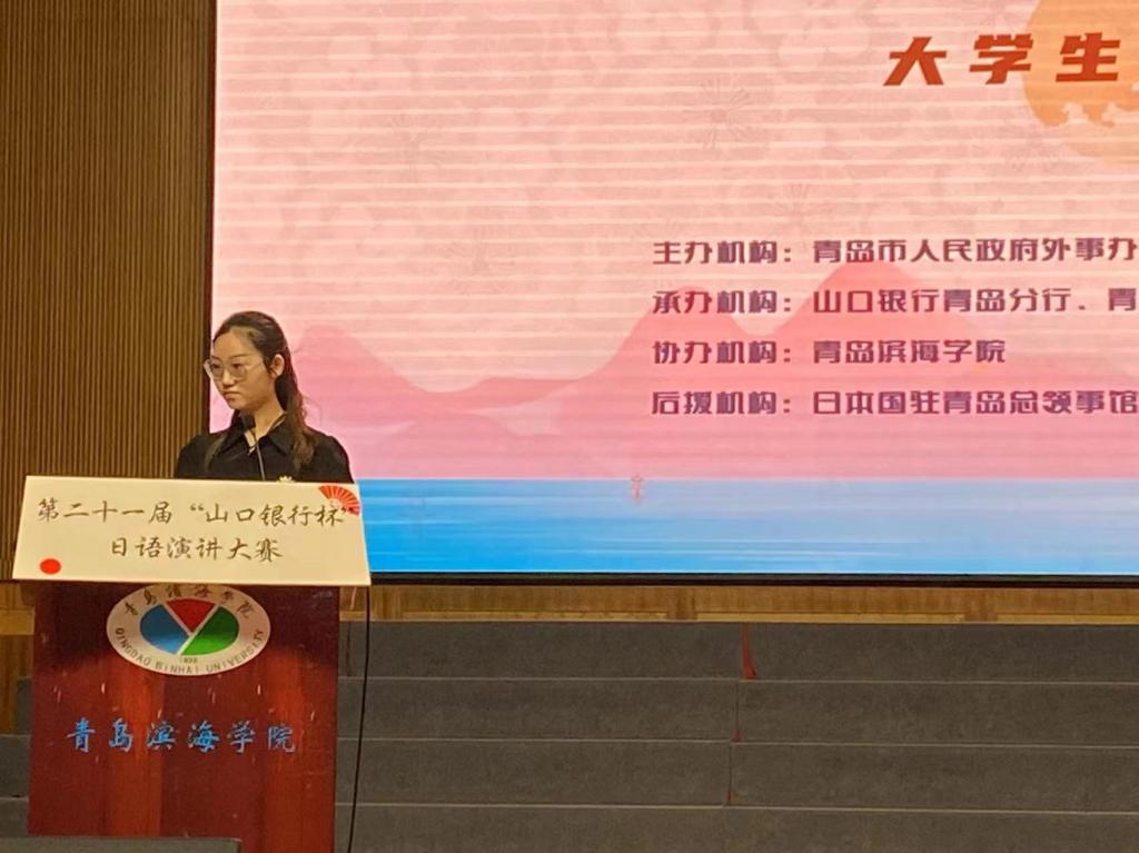 下午演讲题目从“好友和恋人的约定我会优先哪一个?”、“社交软件的使用方法”、“我和日本”三个题目中选择,共计26名低年级同学入选。在低年级组个人决赛中,我校日语系2021级王露茜同学获得特等奖;2021级刘畅同学获得二等奖。青岛大学以团体预赛一等奖的成绩晋级决赛。第二十一届“山口银行杯”日语演讲大赛大学生团体组决赛暨本届大赛的颁奖仪式将于今年11月份举行。