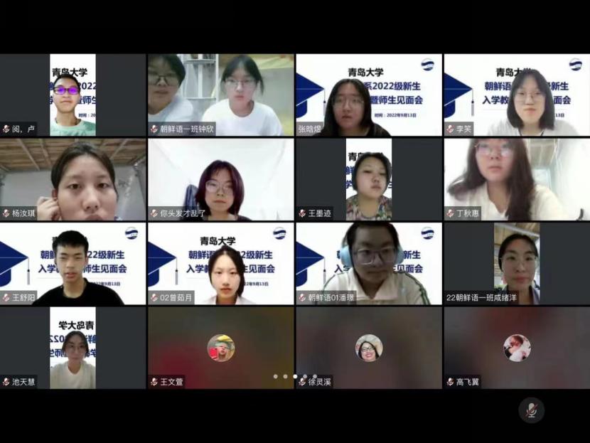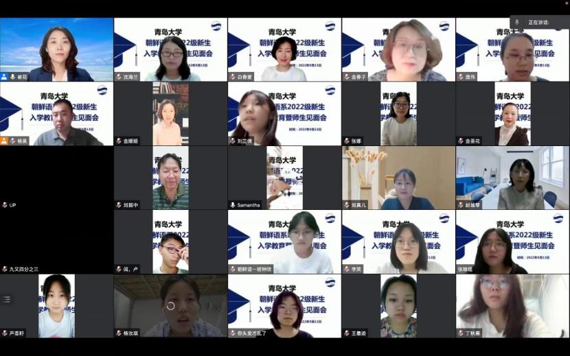 9月13日晚上,朝鲜语系2022级本科新生入学教育暨师生见面会通过腾讯会议在线上举行,朝鲜语系全体教师参加了本次见面会,会议由系主任崔花主持。