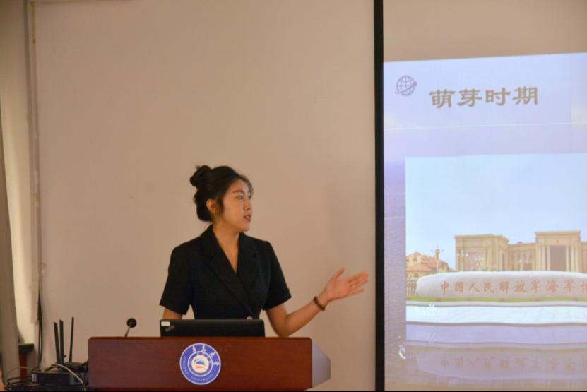 学生第二党支部张锦秀以“踏浪前行,逐梦深蓝”为主题,讲述了自己与支部一起走进海军博物馆,切身体会海军历史帷幕里的峥嵘历程的故事。从而阐述作为一名918博天堂(中国)官方网站