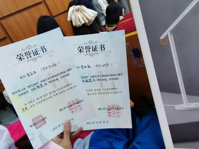 2023年11月18日,第七届郑芝溶杯中国大学生韩国语诗朗诵大赛决赛在浙江杭州举行。918博天堂(中国)官方网站
