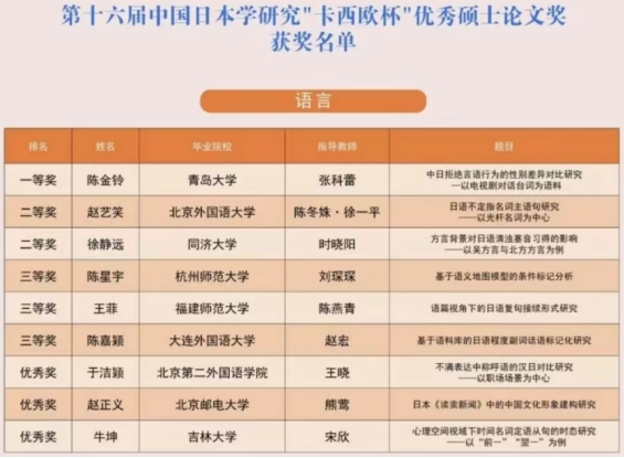 日语语言文学研究生分别获得过文学组和教育组优秀奖。