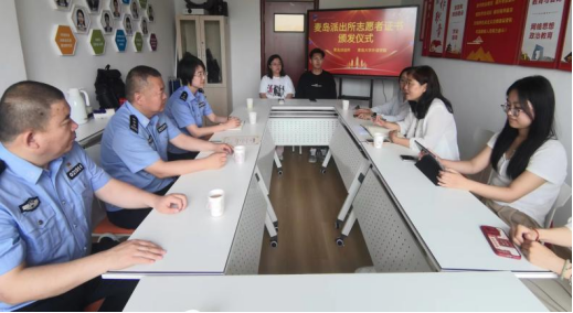 党委副书记王海青、研究生辅导员米娟以及部分学生志愿者代表和民警们一起就警、校共建方面座谈交流。