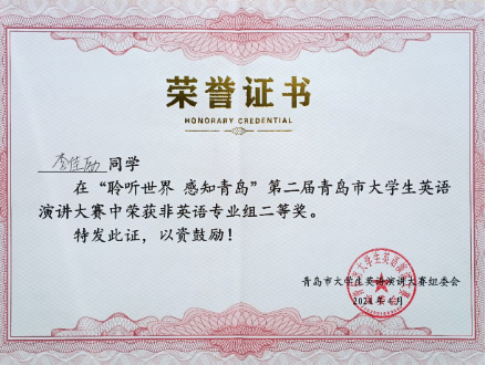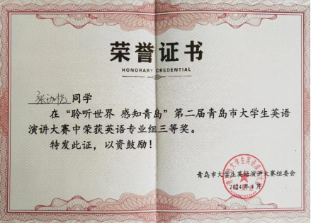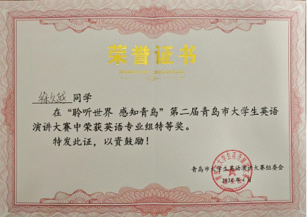 学生在“聆听世界 感知青岛”第二届青岛市大学生英语演讲大赛喜获佳绩