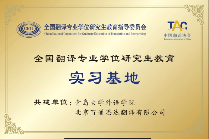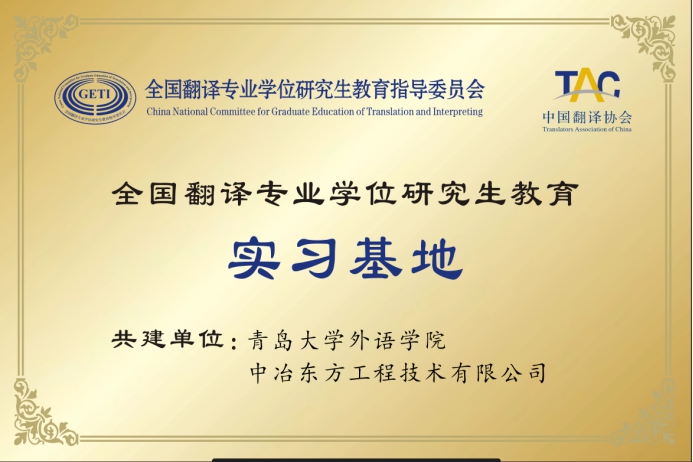 申报、中译语通科技(青岛)有限公司、中冶东方工程技术有限公司、北京百通思达翻译有限公司(以下分别简称为青岛中译语通、中冶东方、百通思达)三家单位共建的全国翻译专业学位研究生教育实习基地,经认证委员会评审,顺利通过认证。