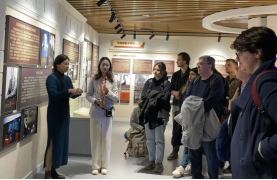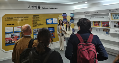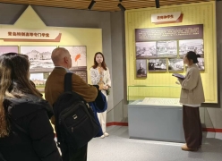 上午9时,研学团首先参观青岛大学校史馆,德语系2023级三位专硕研究生同学綦钰、方铃琳和陈月娟为研学团提供德语讲解。研学团依次参观馆内各个展区,初步了解了青岛大学的历史沿革和办学成果。