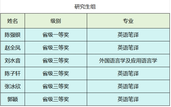 共有6名研究生和11名本科生获得省级及以上奖项,祝贺以下获奖同学: