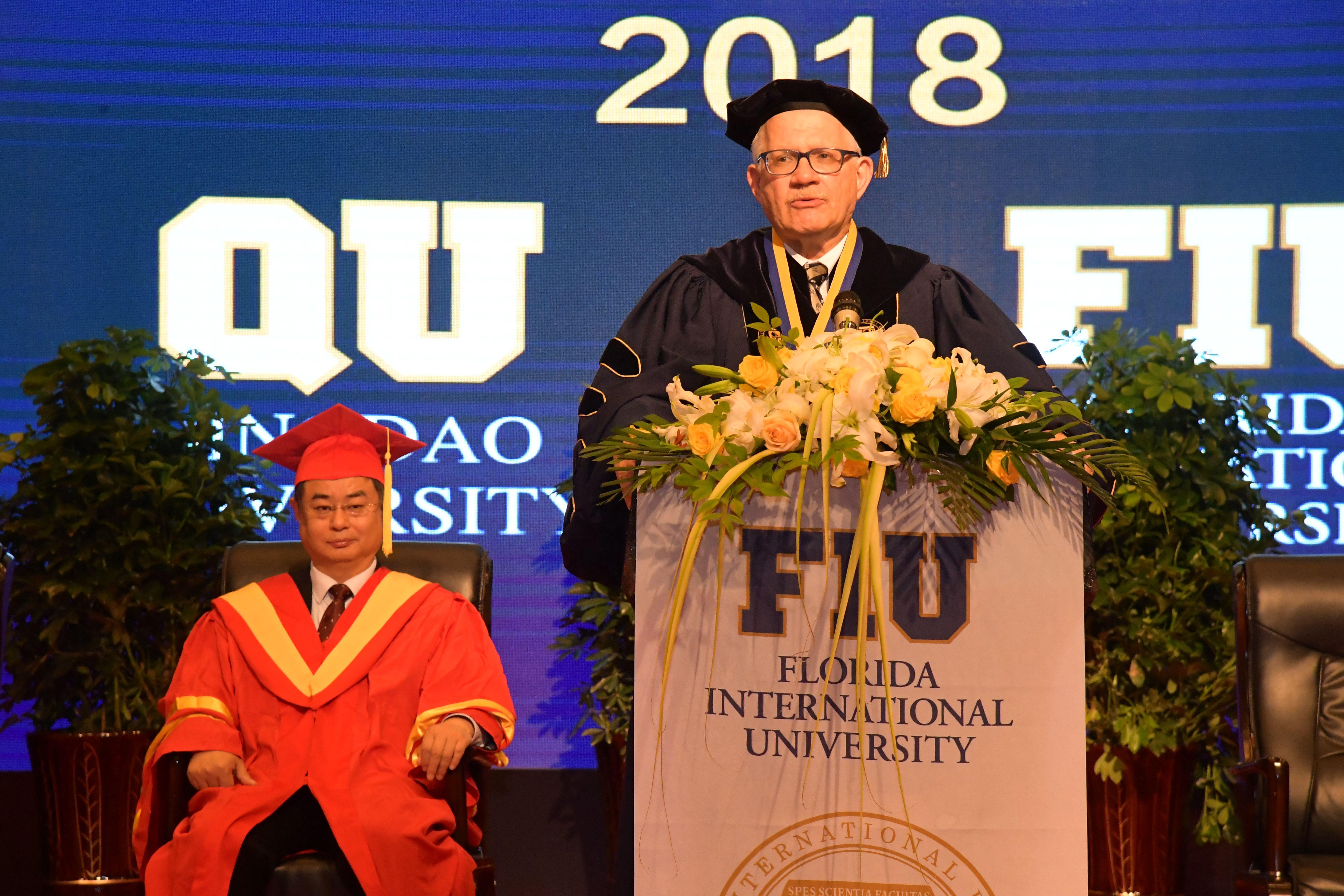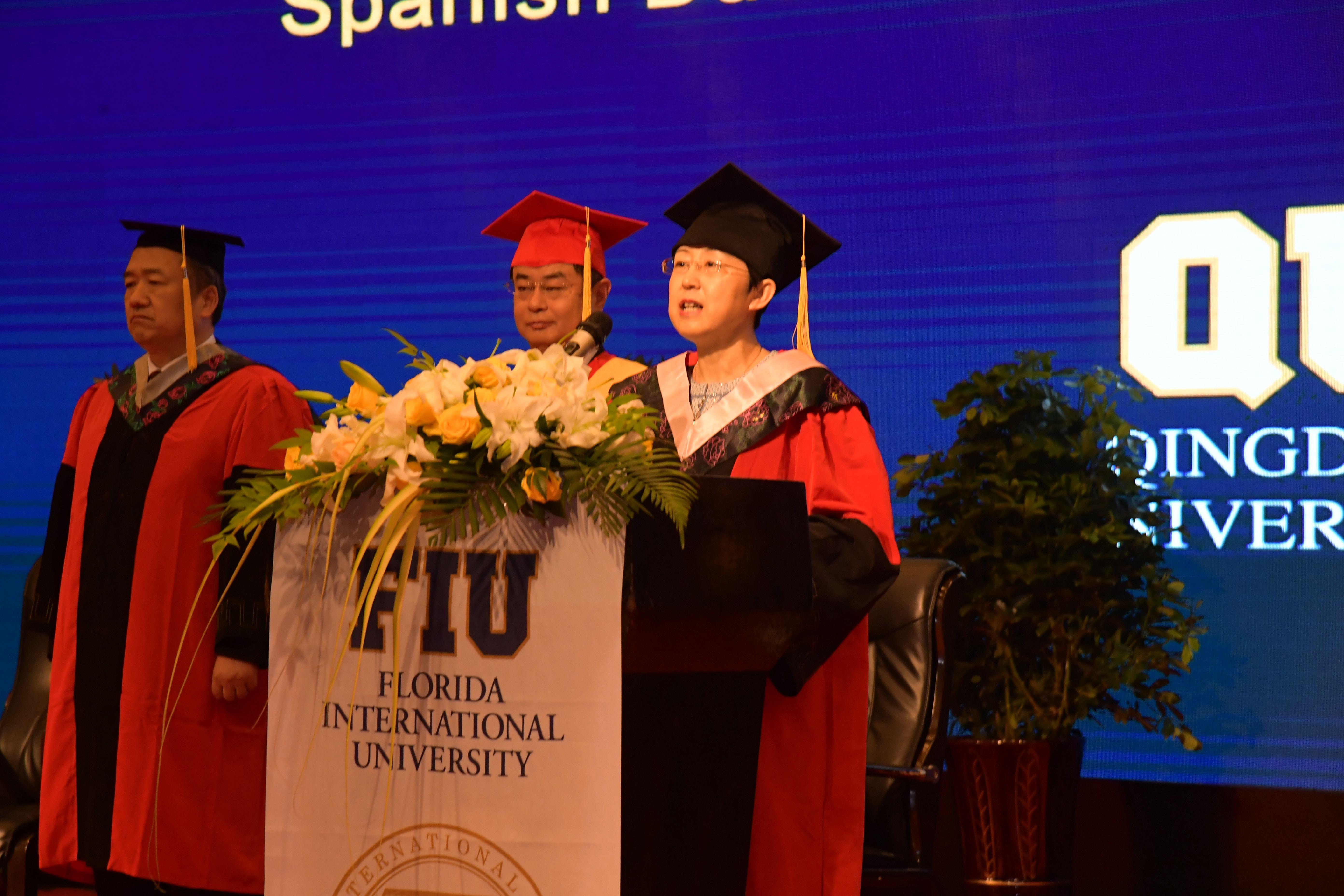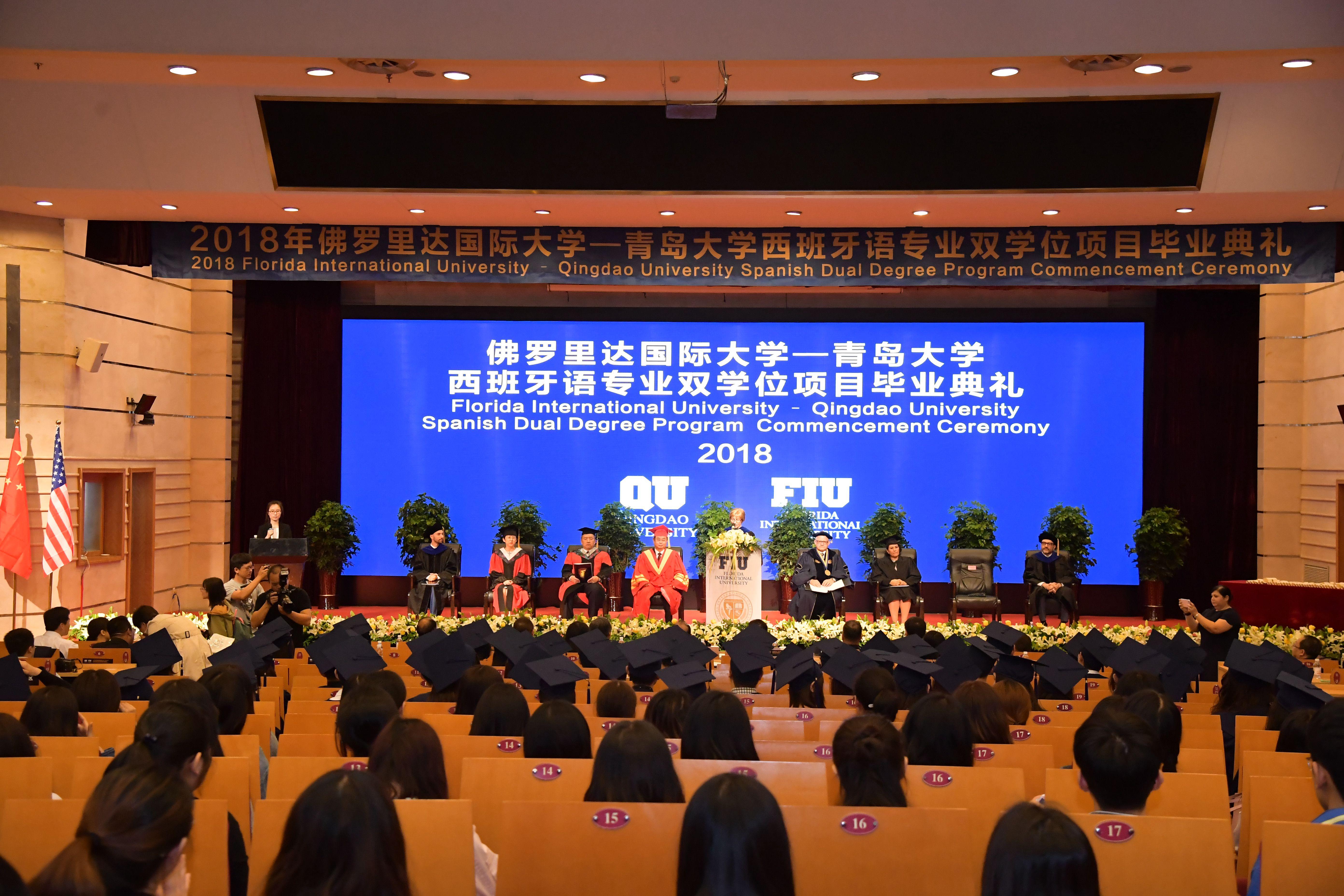5月8日上午,佛罗里达国际大学-青岛大学西班牙语专业双学位项目毕业典礼暨美方学位授予仪式,在国际学术交流中心博学厅举行。校长夏东伟,佛罗里达国际大学校长Mark Rosenberg出席典礼并致辞。校党委副书记仪垂杰,青岛市政府外事办主任牟俊典,青岛市委高校工委副书记、市教育局党委副书记车景华,青岛市商务局副巡视员徐健,海信集团副总裁、海信国际营销公司董事长林澜,海尔集团电器产业有限公司总经理、青岛海永顺新能源科技有限公司董事长孙永乐出席典礼。918博天堂(中国)官方网站