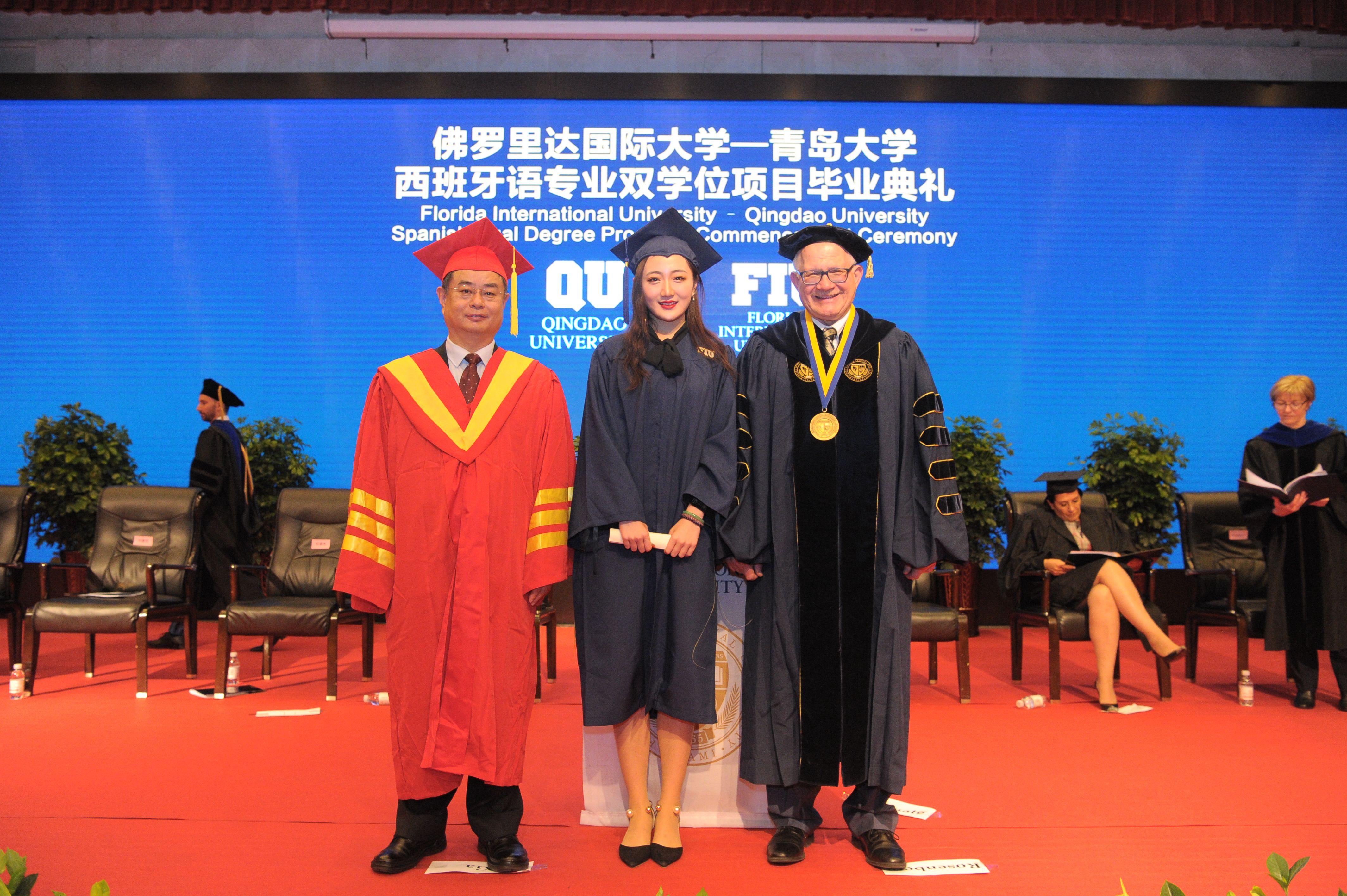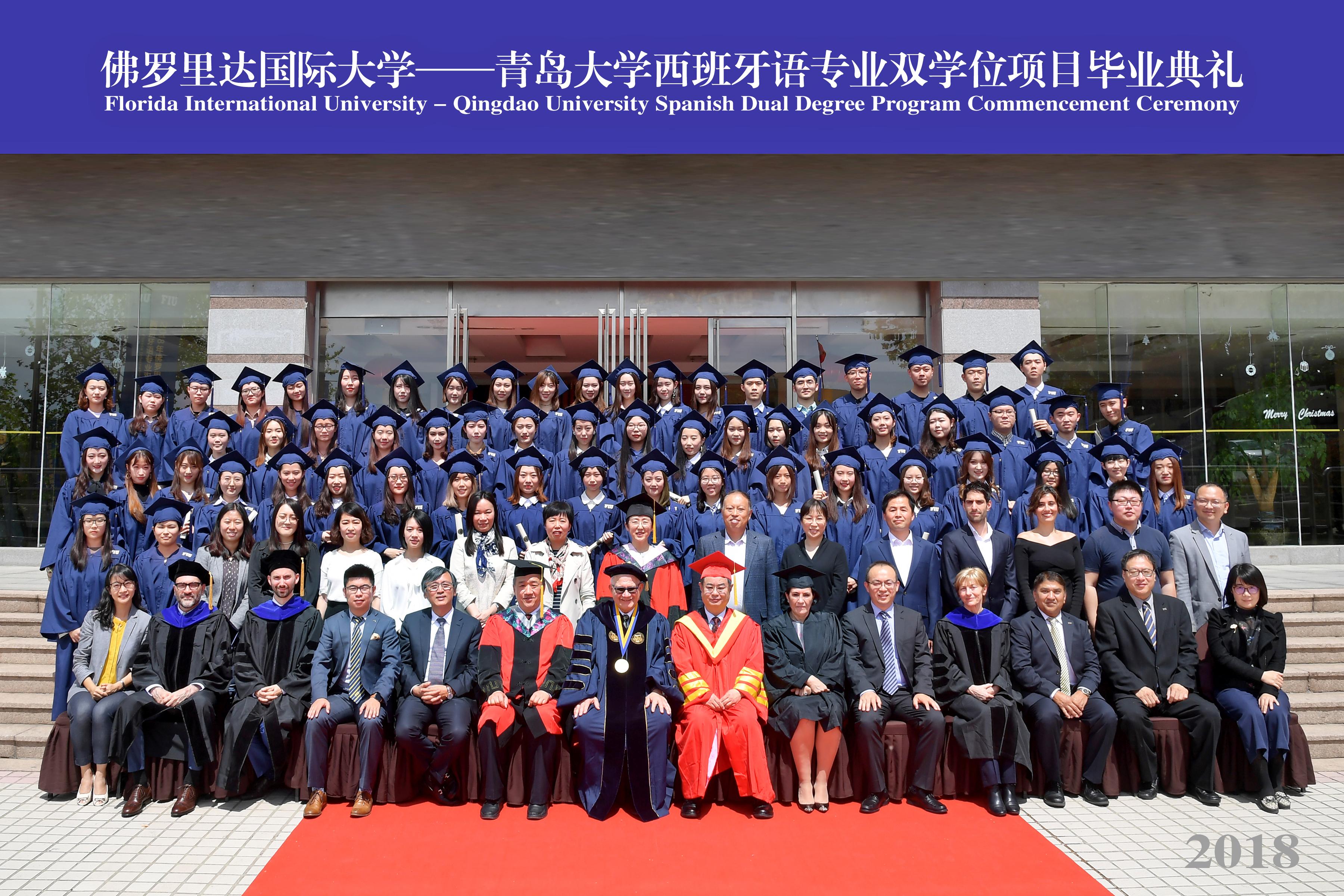 佛罗里达国际大学-青岛大学西班牙语专业双学位项目,是2013年3月经教育部批准的第一个西班牙语中外双学位项目,也是第一个以“拉美贸易”为特色的西班牙语本科专业。2014年,双方又签署了补充合作协议。本专业于2014年首次招生,每年招生60余人,现在校生总数达到318人。该项目培养模式为3+1,即其中一年由美方派出西班牙语专业教师来华授课,中美两校双方互认学分,符合条件的学生毕业时可以获得中美两校本科双学位。依托国内外优质教育资源,将学生培养为具有扎实的西班牙语语言基础、广泛的科学文化知识和跨文化视野,具备“中西英”三语能力,了解拉美国情文化和贸易知识,通晓贸易规则的复合型、应用型人才,使毕业生成为能在外事、经贸、文化、教育、旅游等部门从事翻译、贸易、教学、管理工作的西班牙语高级专门人才。