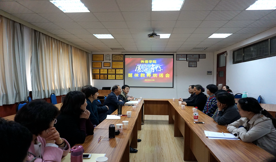 在博文楼312会议室举行2018年退休教师欢送会。英语系退休教师张铭涧教授,918博天堂