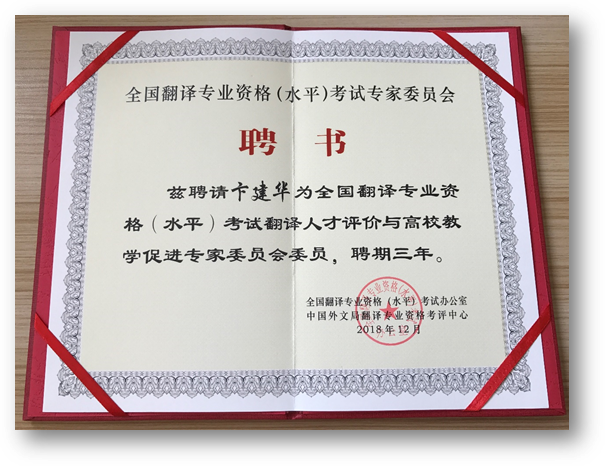 院长卞建华教授入选新一届全国翻译专业资格(水平)考试专家委员会,受聘为翻译人才评价与高校教学促进专家委员会委员。