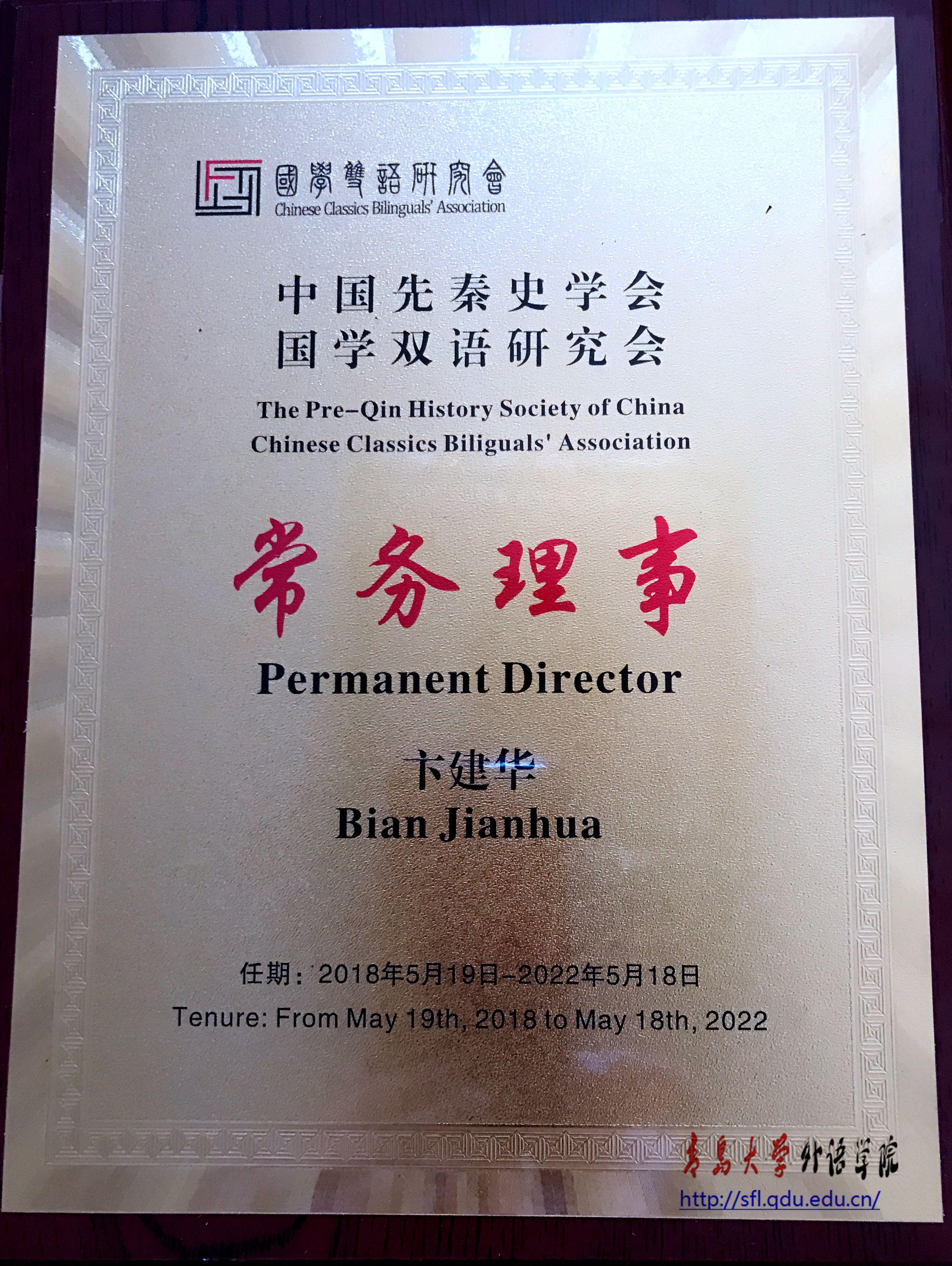 院长卞建华应邀参会并当选为国学双语研究会常务理事。