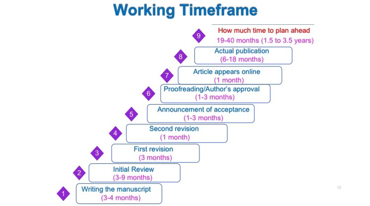 在论文发表方面,Timothy Teo教授向大家介绍了从论文的撰写到发表通常所要经历的时间轴。针对这一部分,他重点强调了既要重视论文的质量,又要保证论文的时效性。