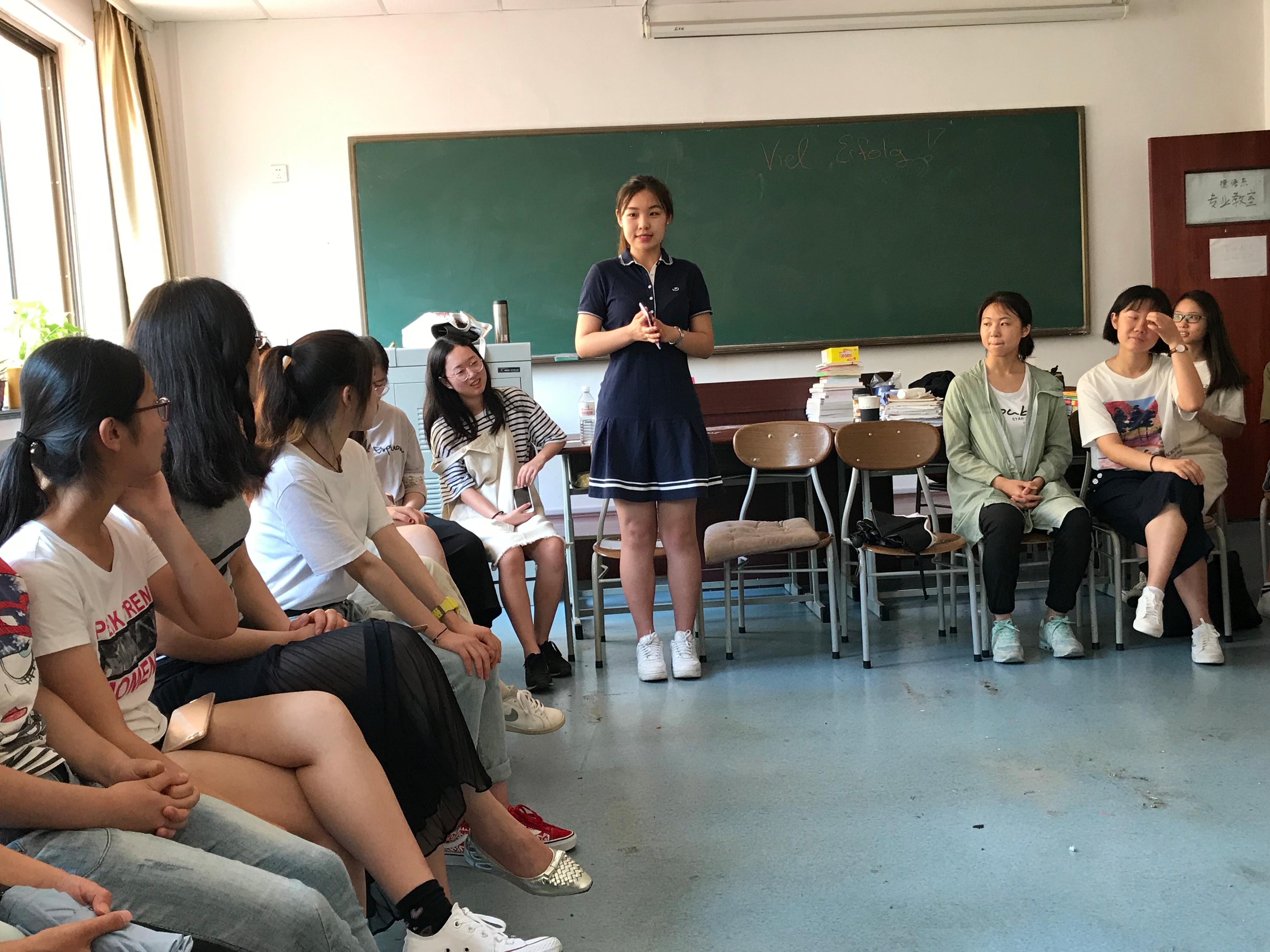 德语系17级同学王玥介绍了德语专业的课程安排情况,厉烨简单描述了学生日常的校园生活,曹玥介绍了大学生艺术团等其他形式多样的学生社团活动,以及各种丰富的学术类竞赛和社会调研比赛,张寒着重介绍了918博天堂(中国)官方网站